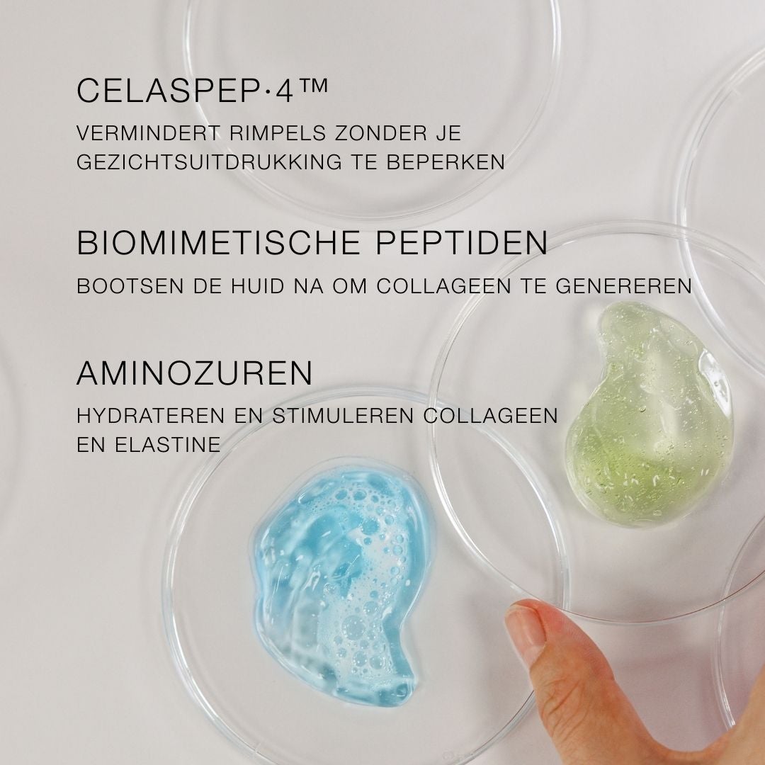 Het gepatenteerde complex CELASPEP·4™ werkt nauwkeurig op alle soorten rimpels en herstelt de elasticiteit en natuurlijke zachtheid van het gezicht.