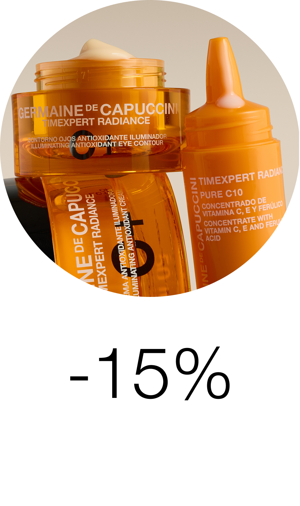 En Germaine de Capuccini te encontraras descuentos de hasta –50% en productos seleccionados, incluyendo cremas, sérums, limpiadores y líneas como Timexpert Radiance C, Timexpert Hydraluronic y más.