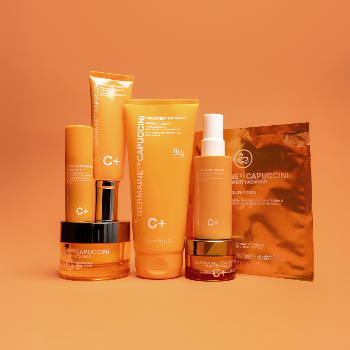 Misma fórmula con Vitaminas C & E y nanopolímero HLG: luminosidad inmediata, hidratación duradera y defensa antioxidante.