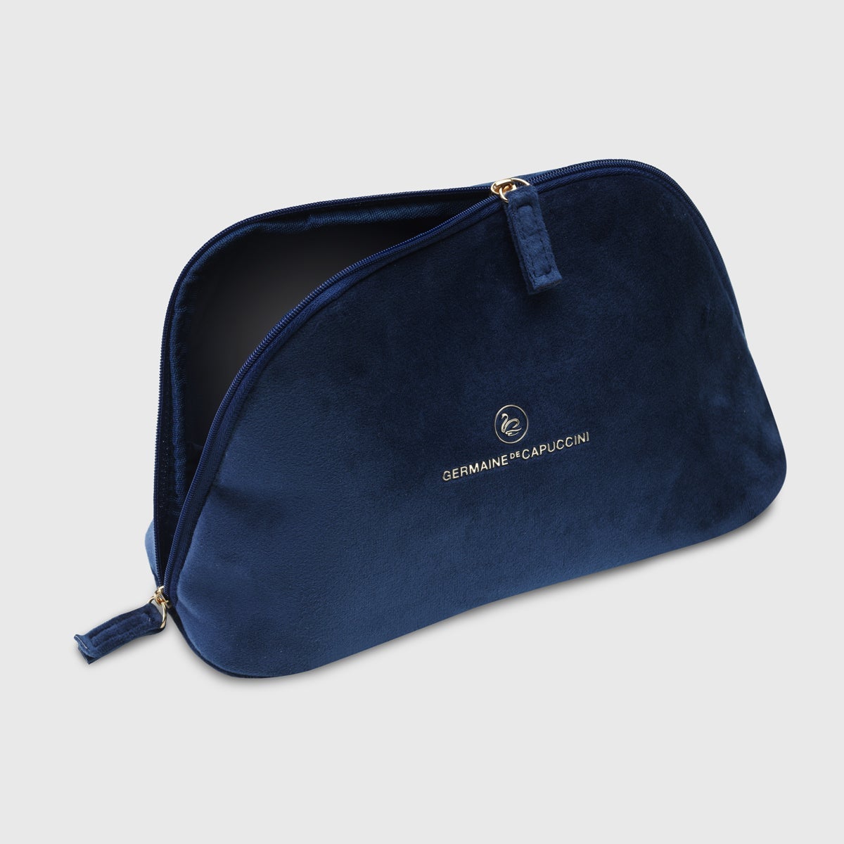 Un neceser premium que combina lujo y sostenibilidad. Confeccionado en terciopelo azul y realzado con un logotipo dorado, su diseño exclusivo y su composición con 95% de materiales reciclados reflejan una elegancia responsable y atemporal.