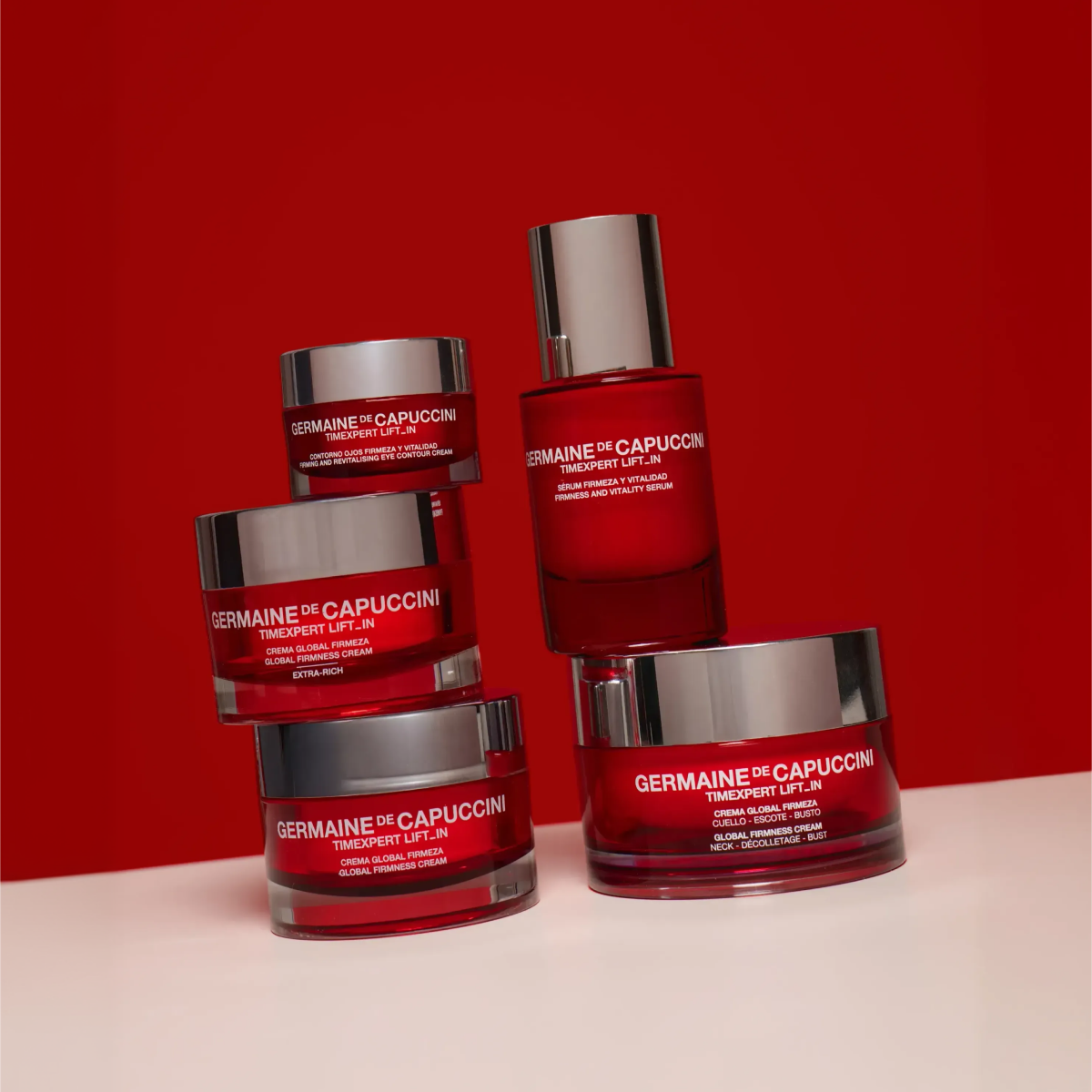 Una rutina Lift_IN completa, especialmente diseñada para piel madura y seca, que actúa con un efecto lifting integral allí donde la pérdida de firmeza se hace más visible: mirada, óvalo facial y cuello. Un enfoque global que ayuda a redefinir los contornos, mejorar la sujeción cutánea y devolver a la piel una apariencia más tersa, elevada y revitalizada.