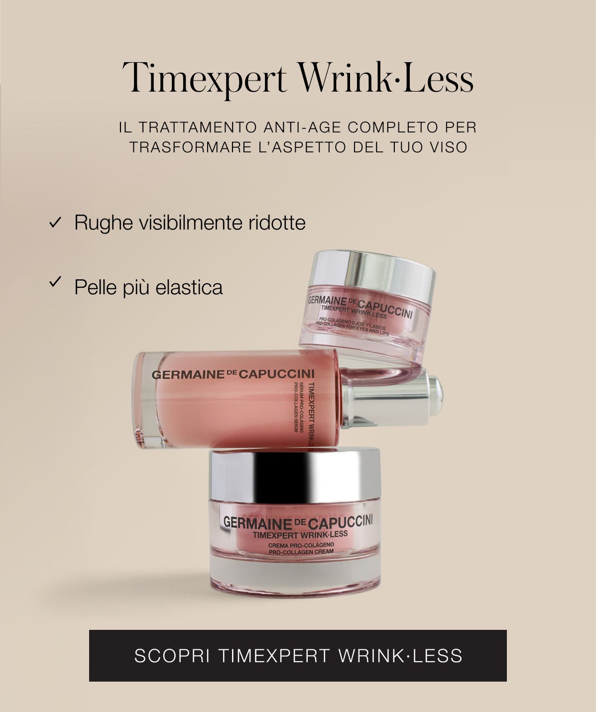 Linee anti-età avanzate nella cosmetica professionale, formulate clinicamente per una pelle più tonica, liscia e luminosa.
