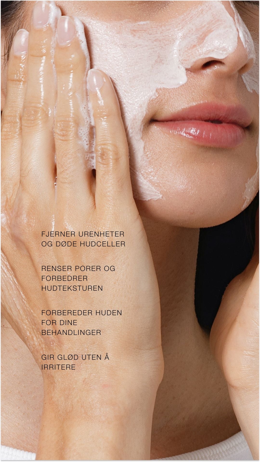 Skummet renser dypt, fjerner urenheter og fornyer hudens tekstur daglig