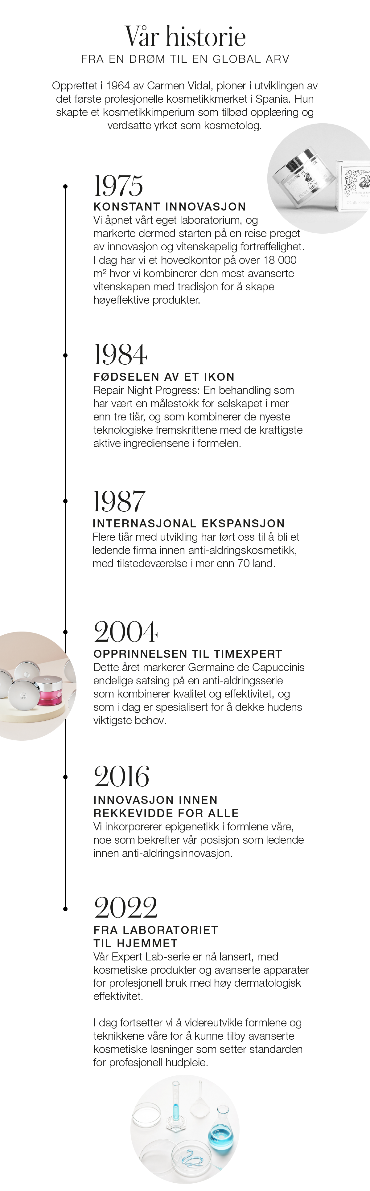 Fra laboratoriet vårt skaper vi unike formler som trosser tiden, og hever standarden for hudpleie med eksklusive protokoller og patenterte aktive ingredienser, noe som garanterer maksimal effektivitet og sikkerhet.