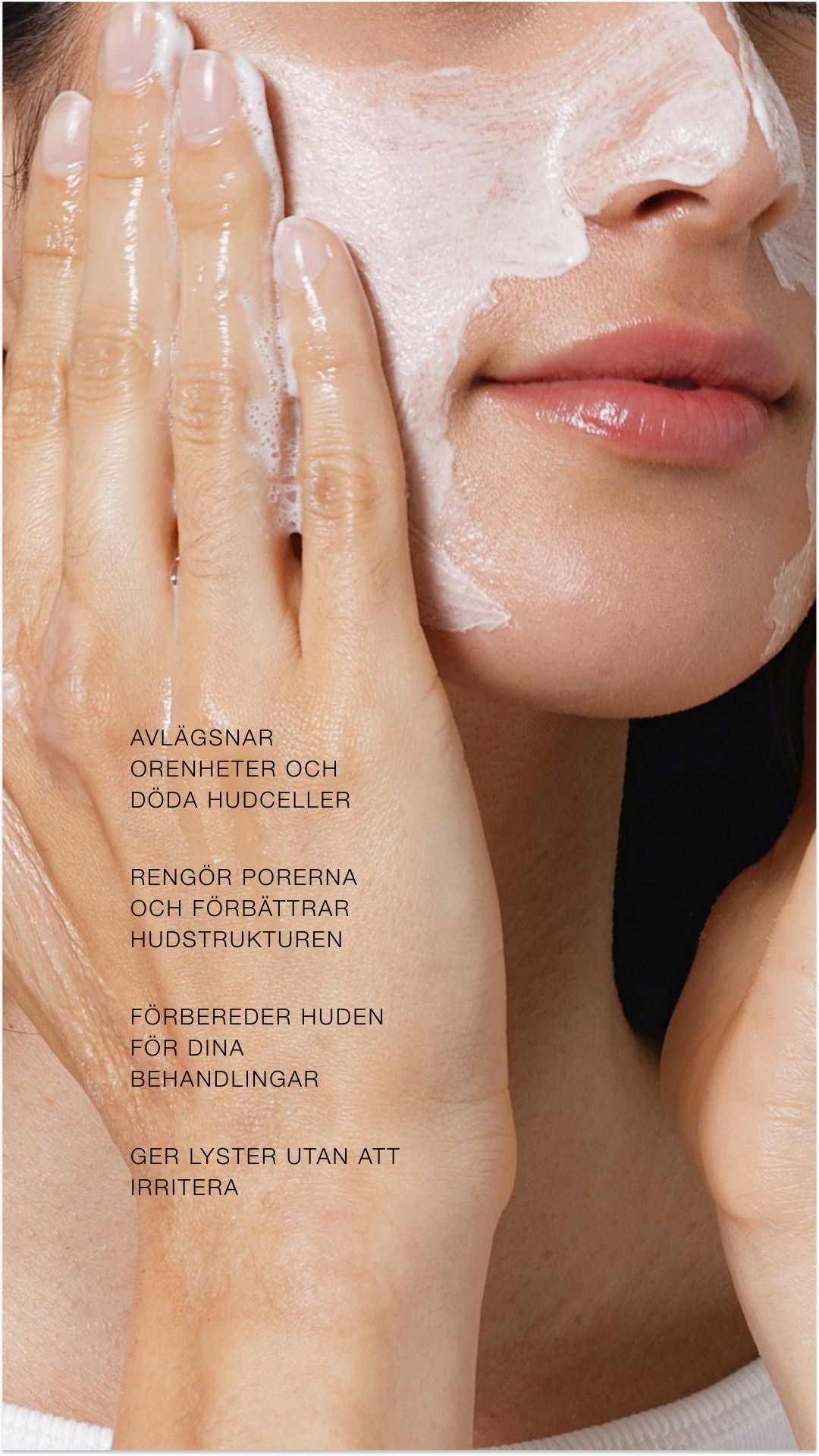 För att den säkerställer en djupare rengöring än ett enda steg: den tar effektivt bort både fett- och vattenlösliga rester, förbättrar hudens hälsa, förhindrar tilltäppta porer och gör det möjligt för efterföljande behandlingar att absorberas bättre. Djuprengörande Skumgel är perfekt för detta steg.