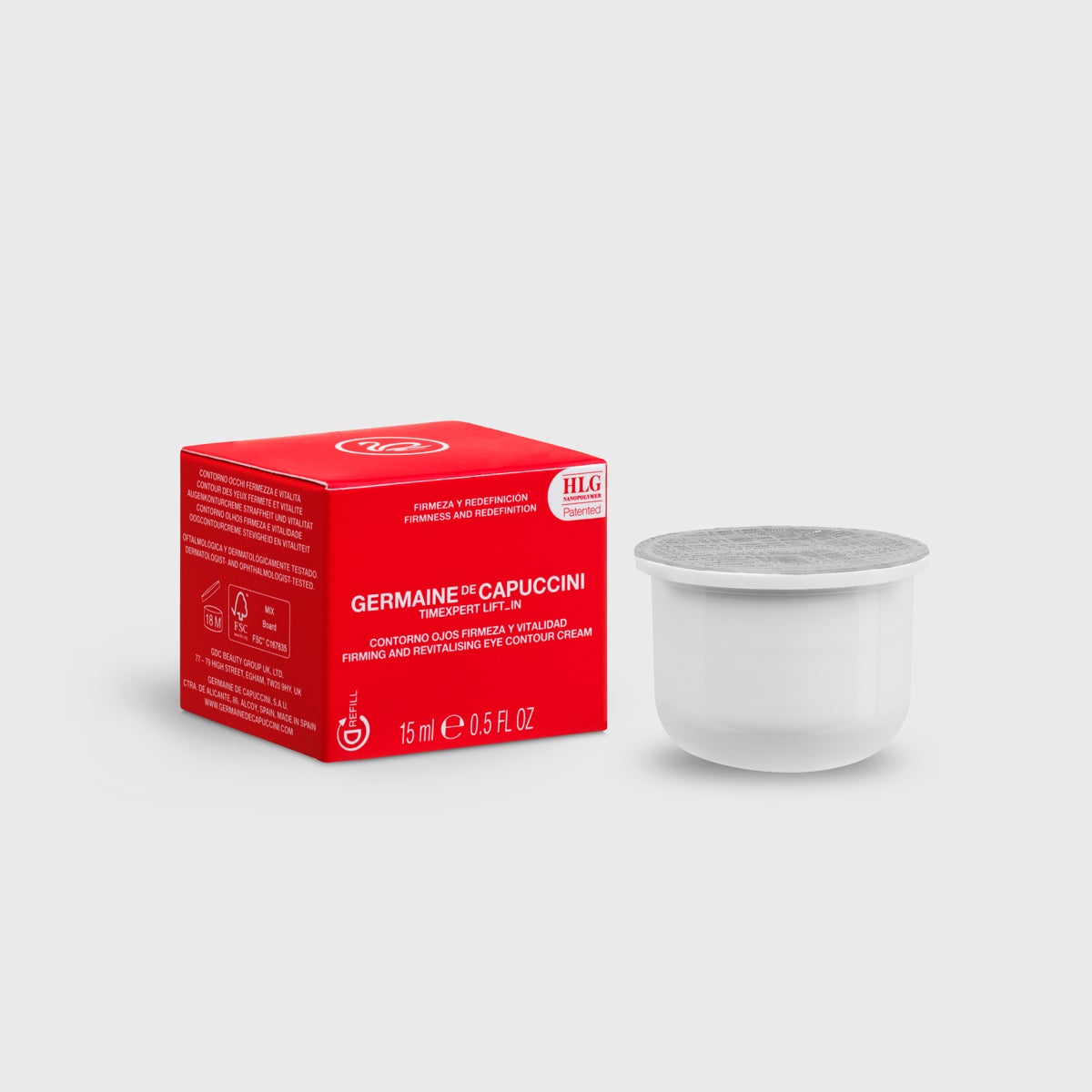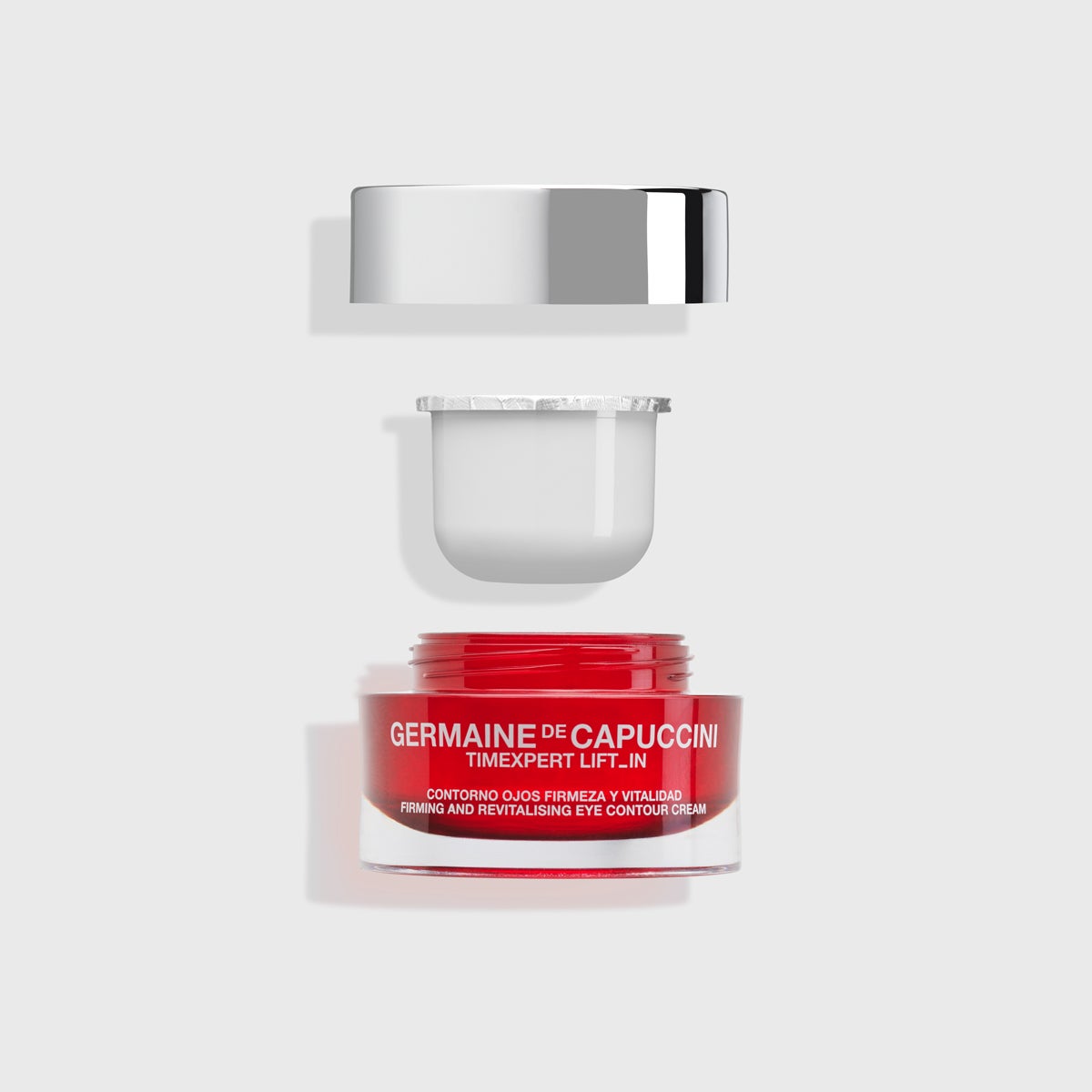 Your Lift_IN eye contour, now in Eco Refill to care for your skin and reduce waste. The refill is designed to fit into the original packaging of TIMEXPERT LIFT_IN Firmness and Vitality Eye Contour, maintaining the same formula, the same texture, and the same results, in a refillable format.
