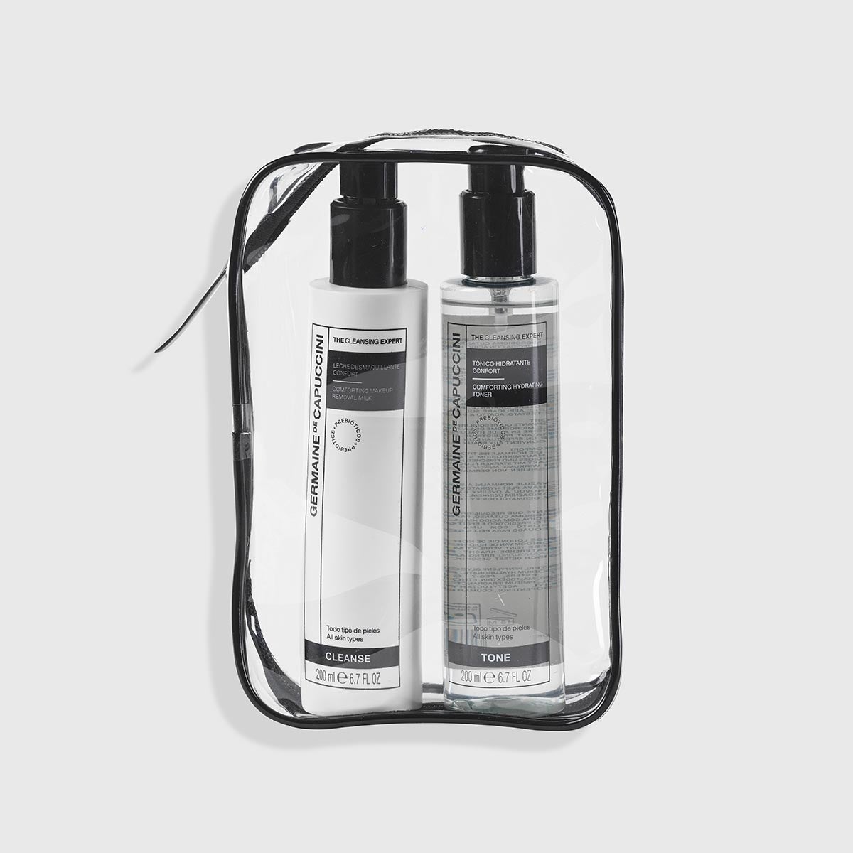 Pack CLEANSE + TONE que desmaquilla y reequilibra en 2 pasos: la Leche Desmaquillante Confort, ahora renovada, limpia con suavidad y protege el microbioma; el Tónico Hidratante Confort calma e hidrata para una piel flexible y luminosa desde el primer uso.